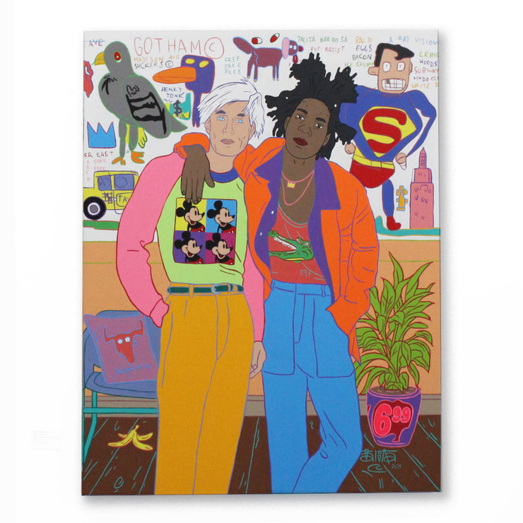 Between 1984 and 1985, two giants of art, Andy Warhol (1928-1987) and Jean-Michel Basquiat (1960-1988), united distinct universes and created around 160 paintings in collaboration, in a true "quatre mains" dialogue. Now, the artist herself joins this iconic encounter, reinterpreting and reaffirming the power of this creative partnership in a "six hands" collaboration.